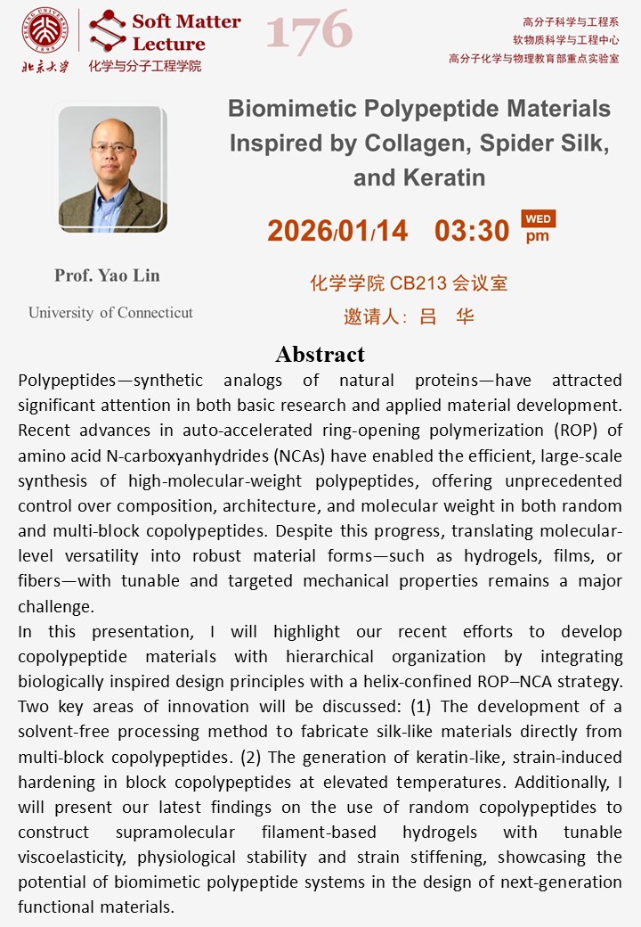 【Soft Matter Lecture 176】Biomimetic Polypeptide Materials Inspired by Collagen, Spider Silk, and Keratin