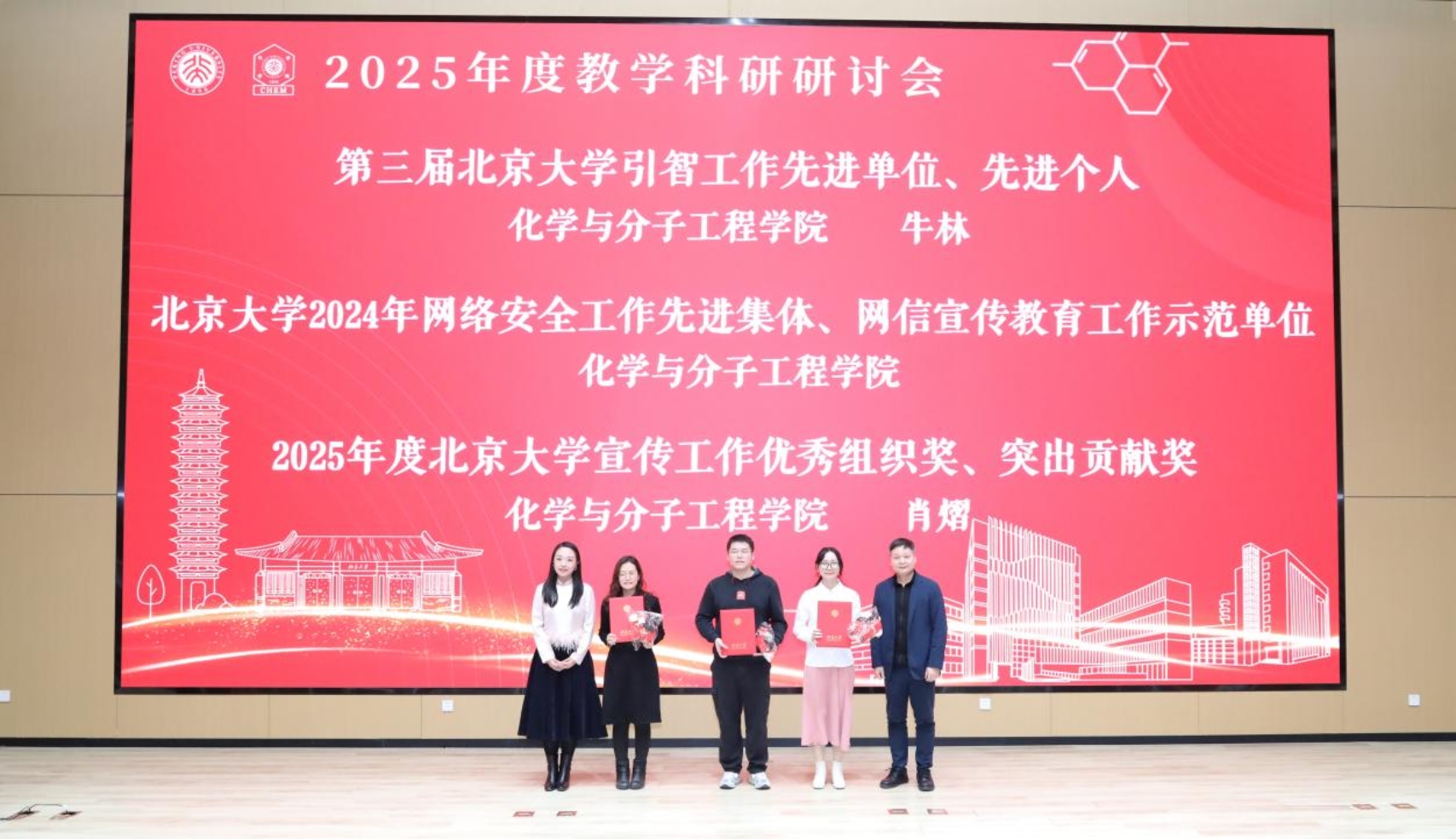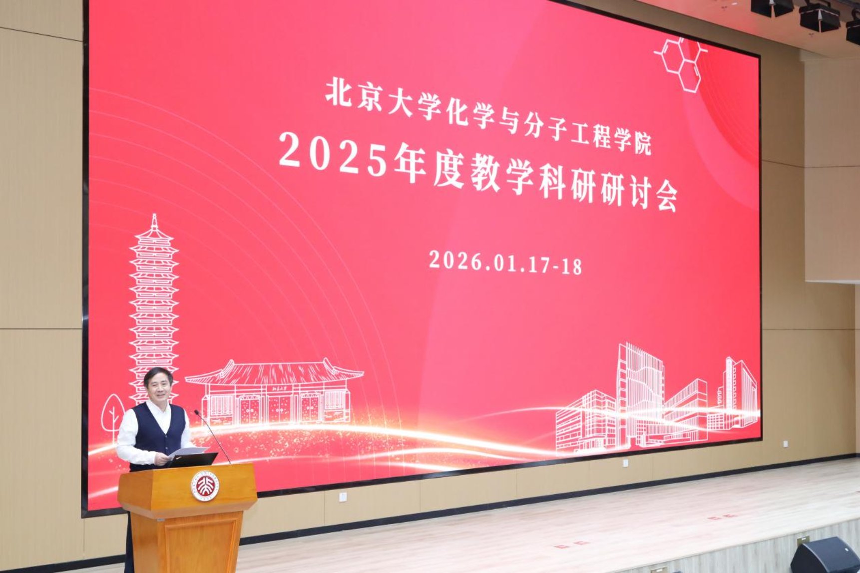 岁末年初,辞旧迎新。2026年1月17-18日,北京大学化学与分子工程学院2025年度总结大会暨教学科研研讨会在新燕园校区顺利召开。全体教职员工齐聚一堂,回顾过往成就,共商发展大计,为学院高质量发展凝聚奋进力量。