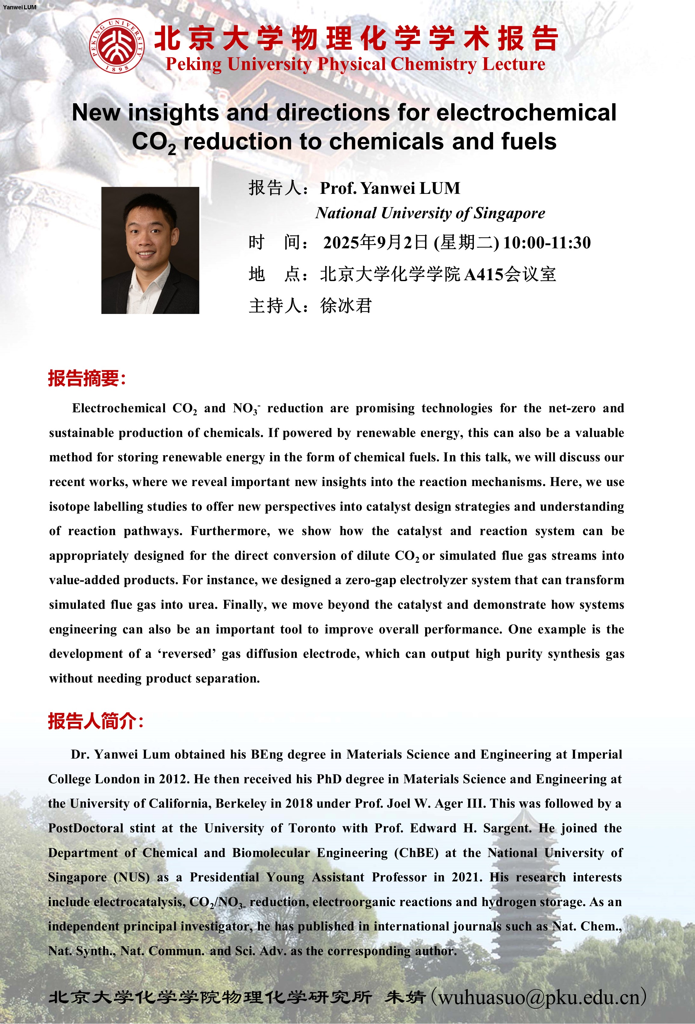 【北京大学物理化学学术报告】New insights and directions for electrochemical CO